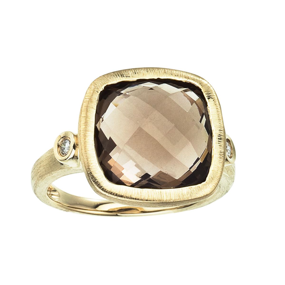 A beautiful 12 mm smoky topaz ring with .05 total carat diamonds.