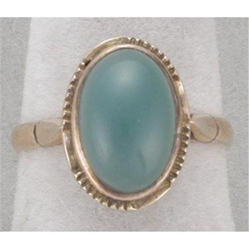 Attractive 14K (remnants of marking) rose gold Retro ring is set with a 9x12MM serpentine cabachon of nice translucence and jade color of green. It is a size 6 and weighs 3.0 grams.