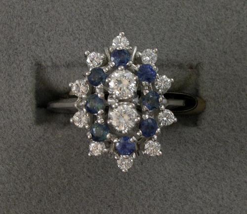 14K WHITE GOLD .68CT TOTAL WEIGHT ROUND BRILLIANT CUT DIAMONDS & .72CT TOTAL WEIGHT SAPPHIRES RIGHT-HAND RING. 6.0 GRAMS.