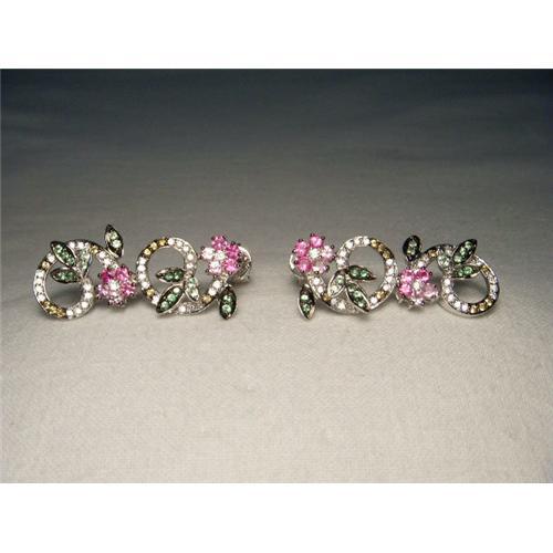 </font></strong>You are looking at a pair of estate 14K white gold pink sapphire, tsavorite, and yellow diamond earrings. Each gorgeous piece features 5 round pink sapphires measuring 2 mm each, 18 round tsavorites, 10 brilliant round yellow diamonds and 24 brilliant round white diamonds measuring 1 mm each. The total weight of the diamonds is .53 of a carat. All gemstones are natural. Each earring measures 1 and 1/4 of an inch long by 1/2 of an inch wide. The pair weighs 7.3 grams. They are in mint condition.</font>