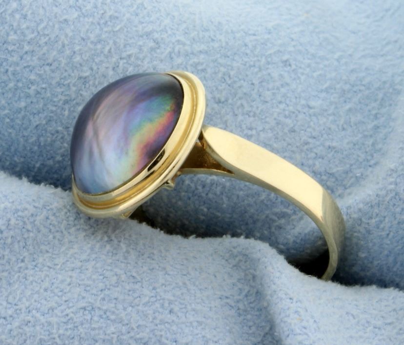 In 14K yellow gold there is a 11 1/2mm silver pearl with great color & luster. Size 7 4.0g
