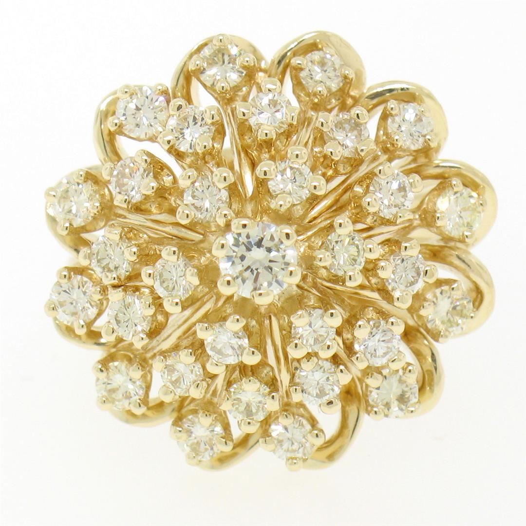 One Like NEW 14K Solid Yellow Gold Ladies Flower Ring With 31 Diamonds 1.01 Carat. Item Details: Material: 14K Solid Yellow Gold, Weight: 8.5 Grams, Stone(s): (31) Natural Genuine Diamonds - Round Brilliant Cut - Prong Set - F Color - VS1/VS2 Clarity, Total Carat Weight: 1.01 (approx.), Ring Size: 5 (We can custom size this ring.), Ring Width: 18.36 mm, Ring Height: 13.83 mm rise off the finger, Condition: Like NEW!