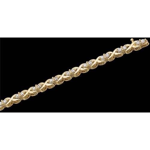 This elegant 14k Yellow Gold Bracelet features 34 'Sparkling' round Diamonds with a Total Weight = 2.50 CARATS! The Diamonds are set in stations of two, with a swirled 'x' between them. They are all well cut, well matched, Fine 'H' Color and 'I1' Clarity. It is in Brand New condition and priced FAR below Retail!