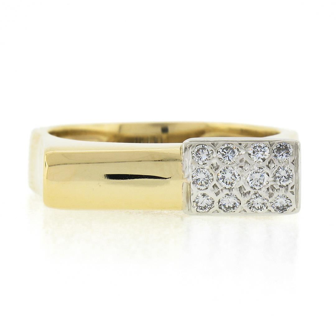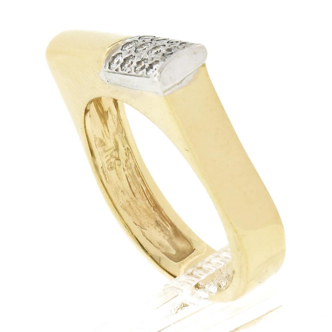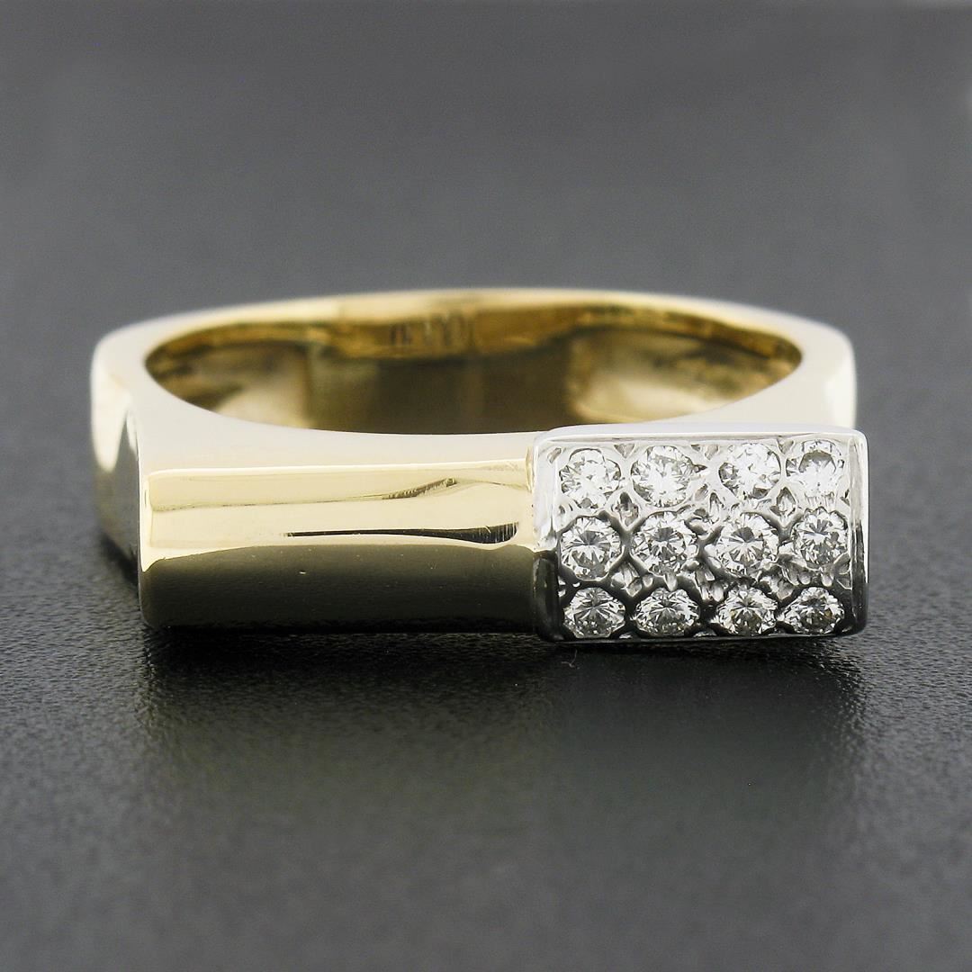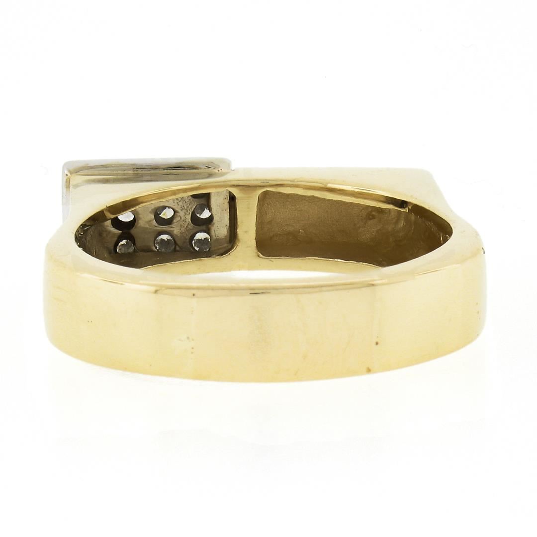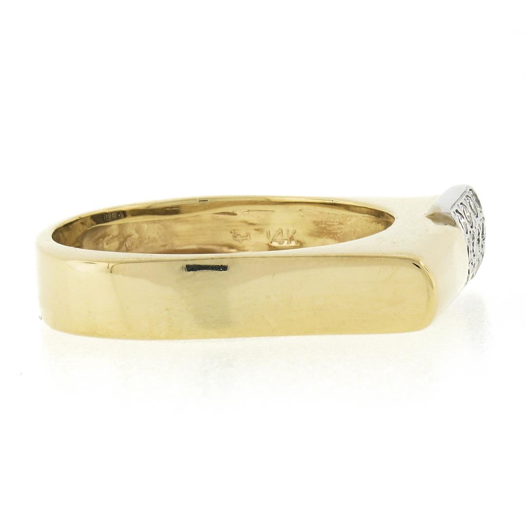 A solid 14k yellow & white gold ring, with 12 round brilliant cut natural diamonds (G/H - VS1/VS2 ; 0.20ctw). The ring is size 9.5, weighs a total of 7.89 grams, and measures 6.2mm wide.