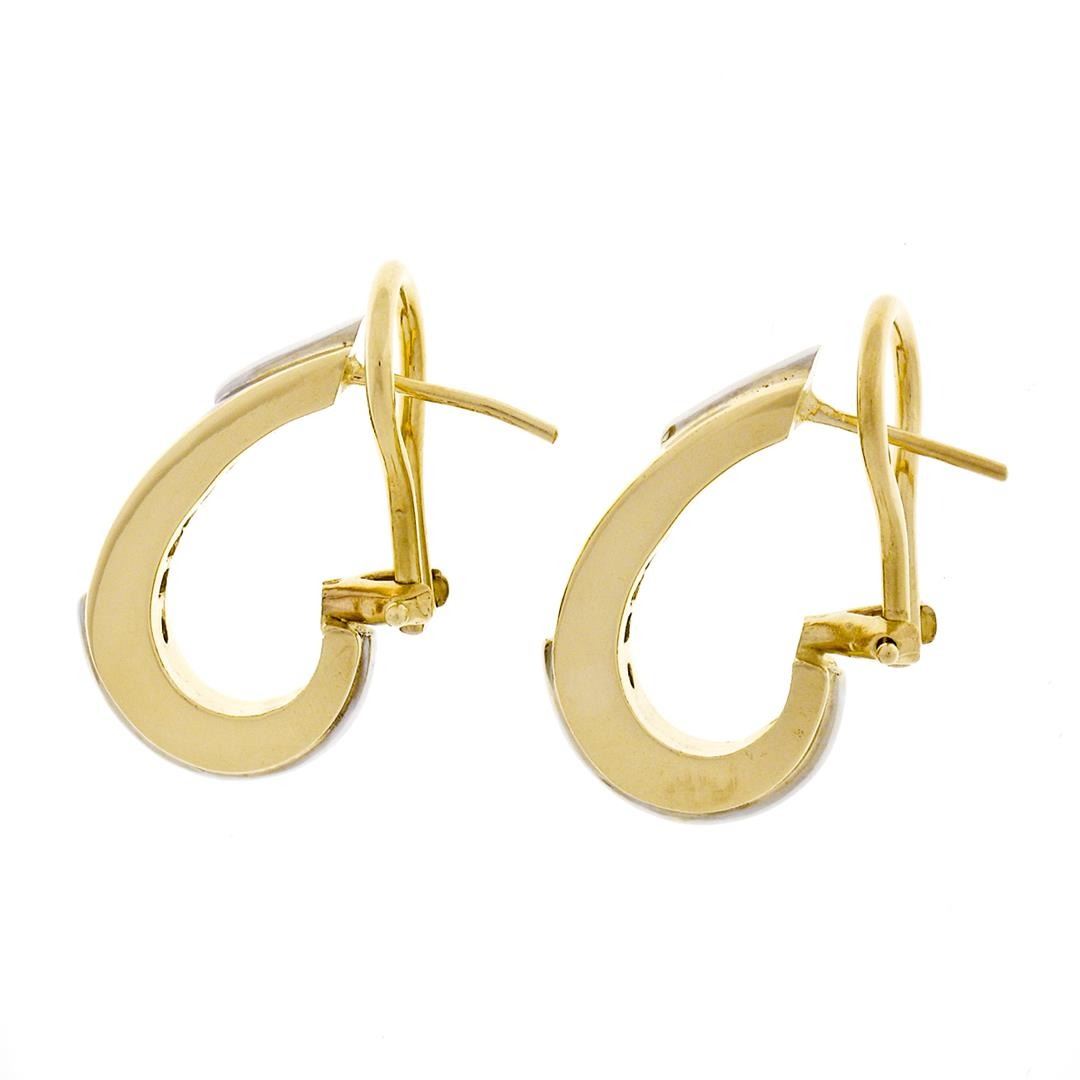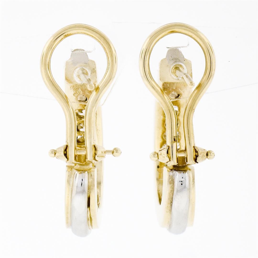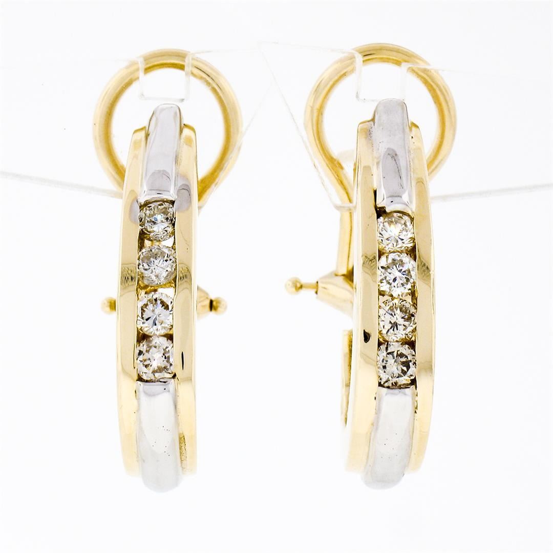 14K TT Gold 0.40 ctw Round Brilliant Channel Diamond Huggie Cuff Omega Earrings
