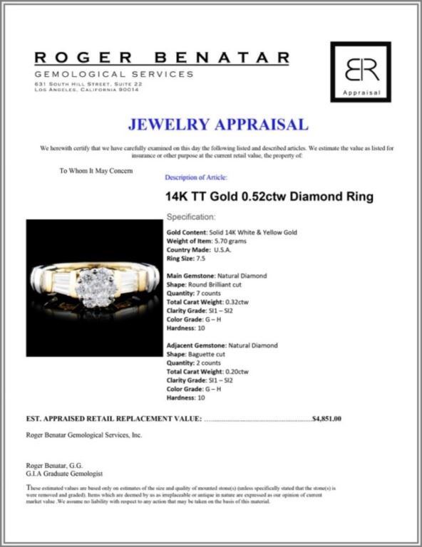 Regarding Appraised Jewelry and Loose Stones - Auctionfarm sends them out to a third party for Retail Replacement Value Appraisals, which are the most common. These types of evaluations are written for insurance needs. This would be the cost to replace the jewelry with an item of equal quality and kind, considered to be the current market price or the replacement value. This type of appraisal is done to protect you in the event of damage or loss of a valuable item. Our appraisals are conducted by independent 3rd Party appraisal firms that utilizes Certified GIA Gemologist. Appraisals should be used for verification of gemstone and/or metal weight, size, and grade only, not actual value. Appraisal value should be considered for insurance purposes only, not actual value, as price varies greatly from retail locations thru out the world. Items should not be purchased with the expectation to resell for appraisal price, or for profit.