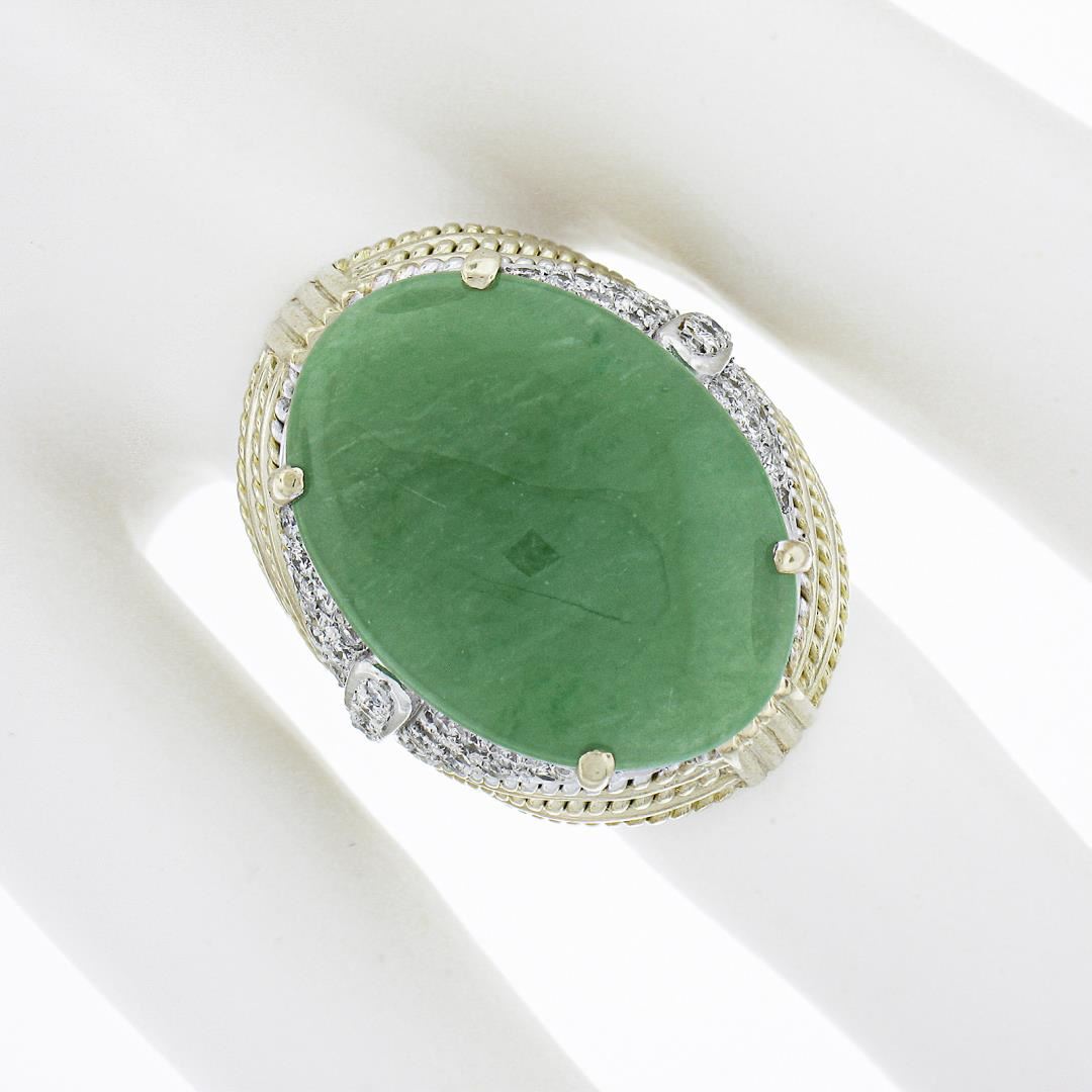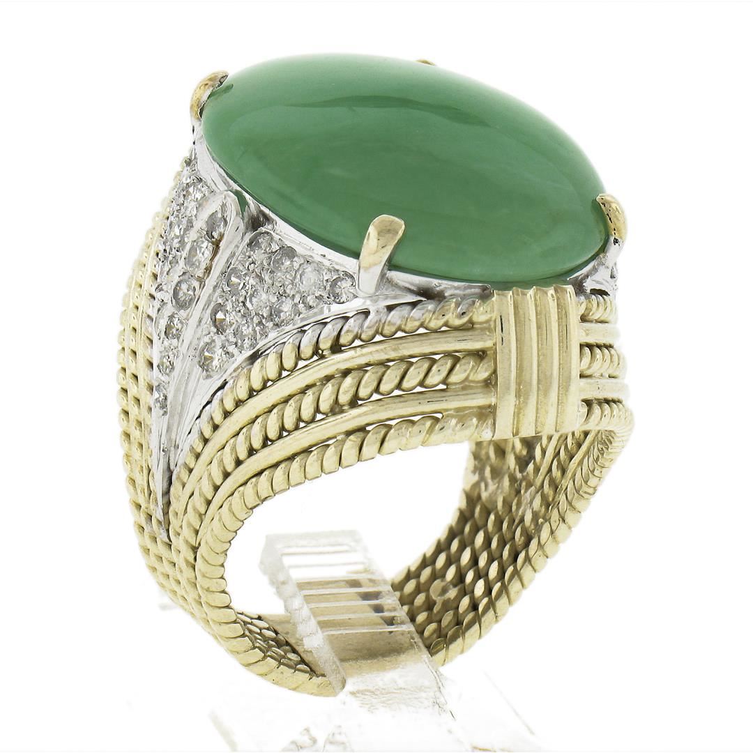 14K TT Gold Oval Cabochon Jade w/ 0.60 ctw Diamond Twisted Wire Cocktail Ring