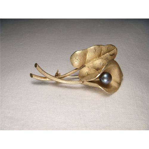 <tr><td>Title:14K Tahitian Black Pearl Calla Lily Brooch</td></tr>