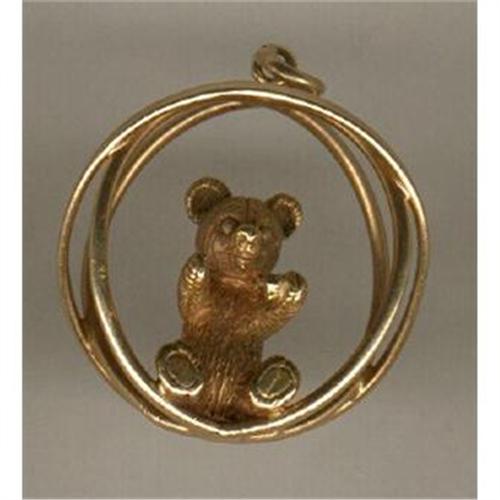 Cute 14K yellow teddy bear setting in a gondola. Measures 1 1/8? in diameter and weighs 15.5 grams.