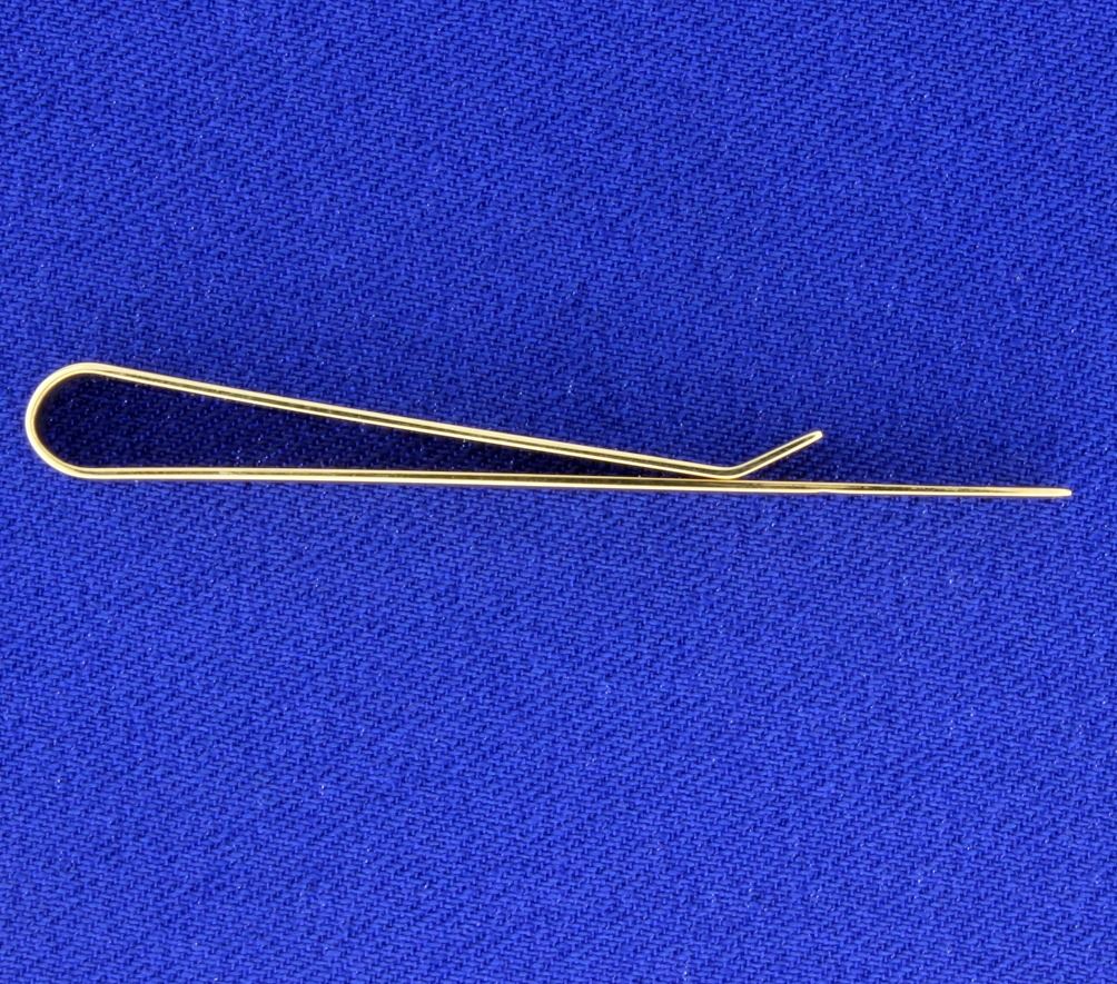 It is 14K yellow gold and is 2 inches long. 4.3g