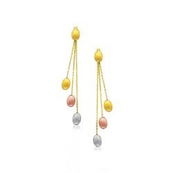 Textured pebble like elements hang from delicate multi length chains and upper pebble sections on this beautiful pair of dangling earrings. Crafted in superb 14K tri-color gold.Rhodium Polish: NoLine Item Type: GoldMetal Name: Tri-Color GoldMetal Content: 14KBacking: Push BackLength: 2.50 iWidth: 0.50 i