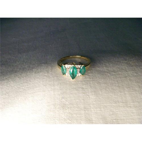 <tr><td><font size="2" face="Arial, Helvetica, sans-serif"><strong><font color="#000033">Title:</font></strong>14K Tri-Stone Marquise Emerald Diamond Ring</font></td></tr>