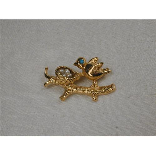 <table width="100%" border="0" cellspacing="0" cellpadding="4"><tr><td><em> </em></td></tr><tr> <td width="100%"> You are looking at an estate 14K yellow gold bird nest brooch. This uniquely designed piece fearutes a solid gold bird with a natural round turquoise at its eye and a nest hosting 5 seed pearls each measuring 2 mm in diameter. The brooch measures 1 and 1/4 of an inch long by 3/4 of an inch wide. The pin weighs 6.5 grams. It is in mint condition. </td></tr><tr> <td> </td></tr><tr> <td>Reference #: Kamil_Broo_023</td></tr><tr><td>Condition:mint</td></tr><tr><td>Year:post-1945</td></tr><tr><td>Title:14K Turquoise Seed Pearl Bird Nest Pin Brooch</td></tr><tr><td>Location:New York</td></tr></table>