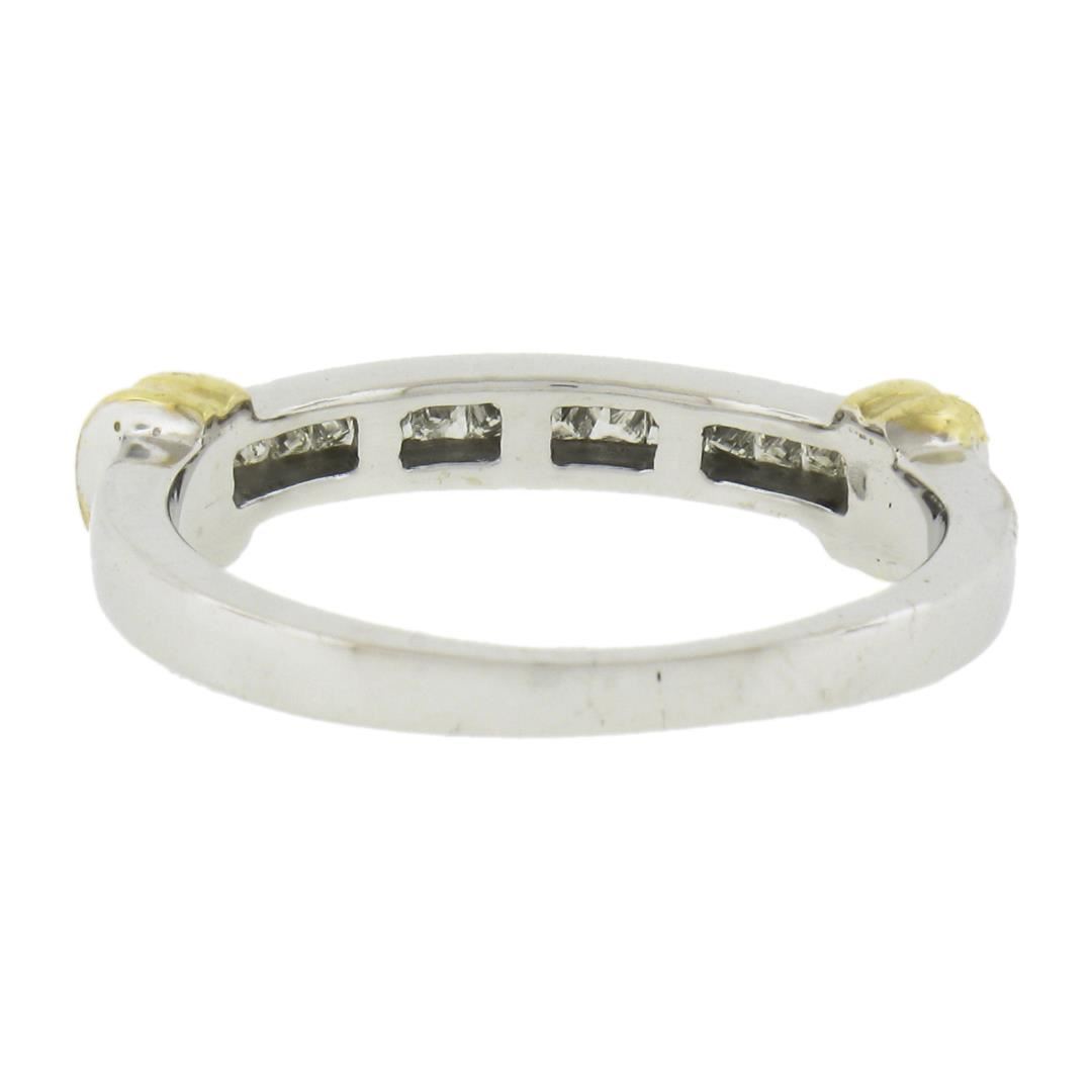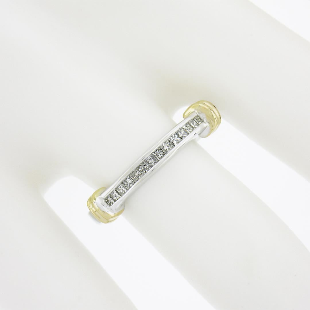 A solid 14k yellow & white gold band ring, with 14 princess cut natural diamonds (H/I - VS1-SI1 ; 0.25ctw). The ring is size 7.0, weighs a total of 3.16 grams, and measures 2.9mm wide.