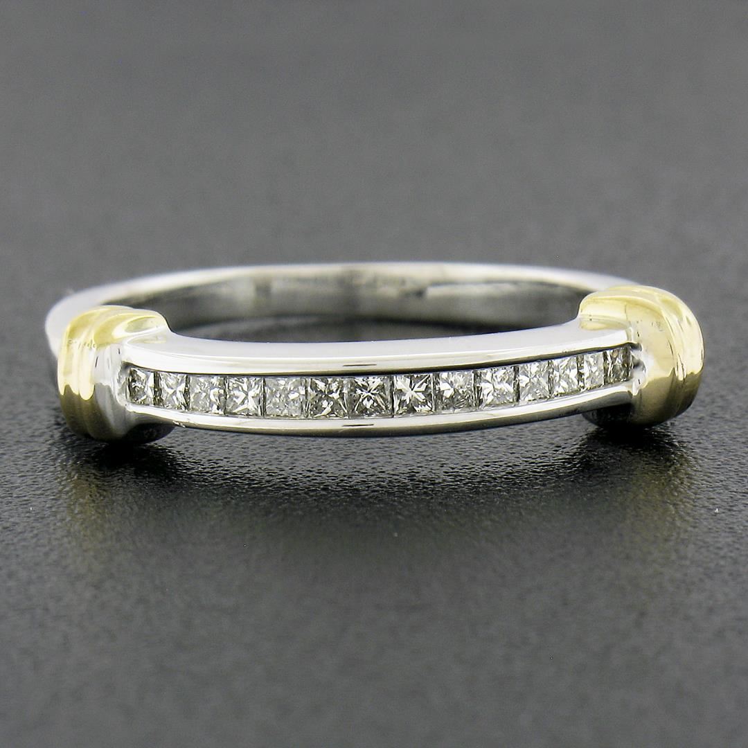 A solid 14k yellow & white gold band ring, with 14 princess cut natural diamonds (H/I - VS1-SI1 ; 0.25ctw). The ring is size 7.0, weighs a total of 3.16 grams, and measures 2.9mm wide.