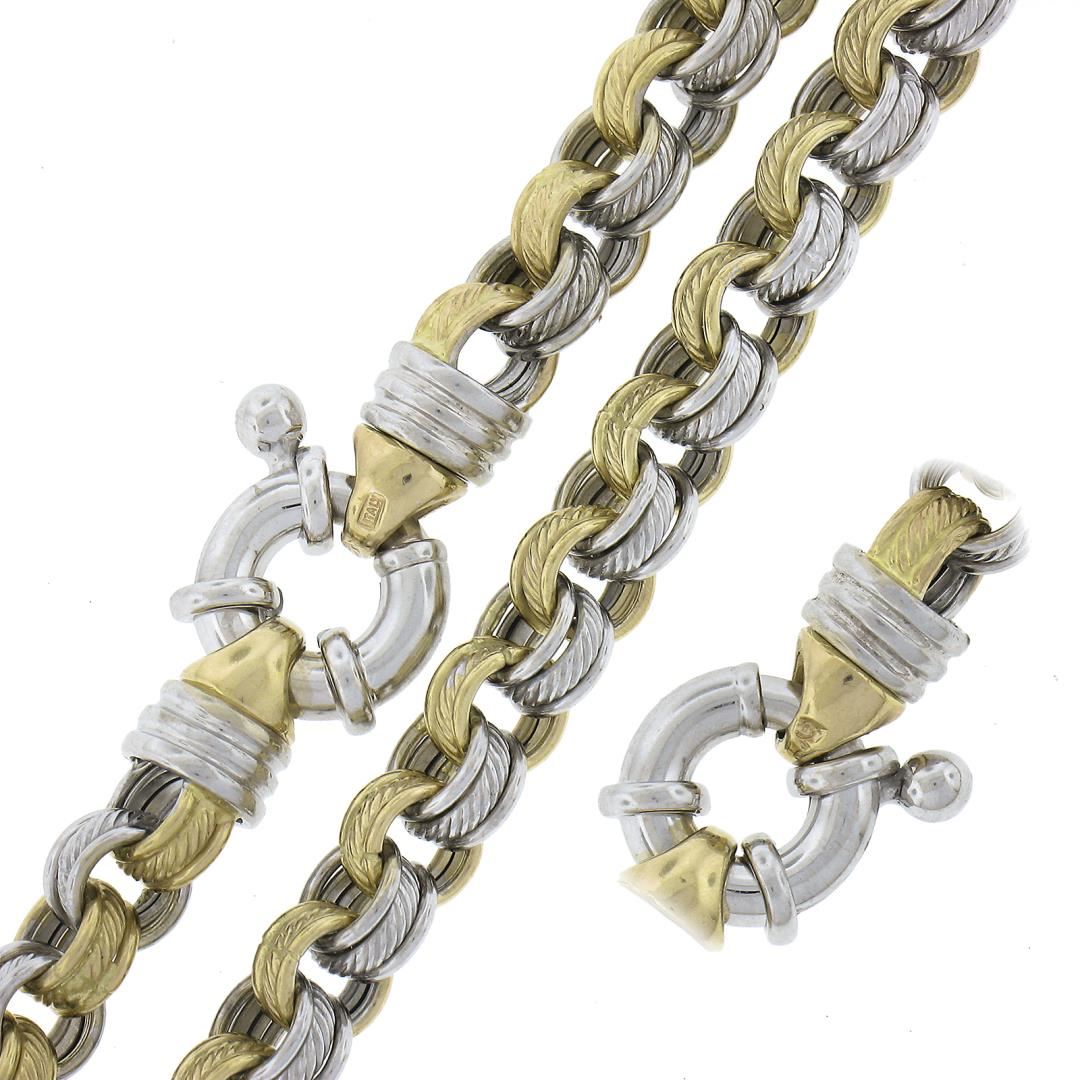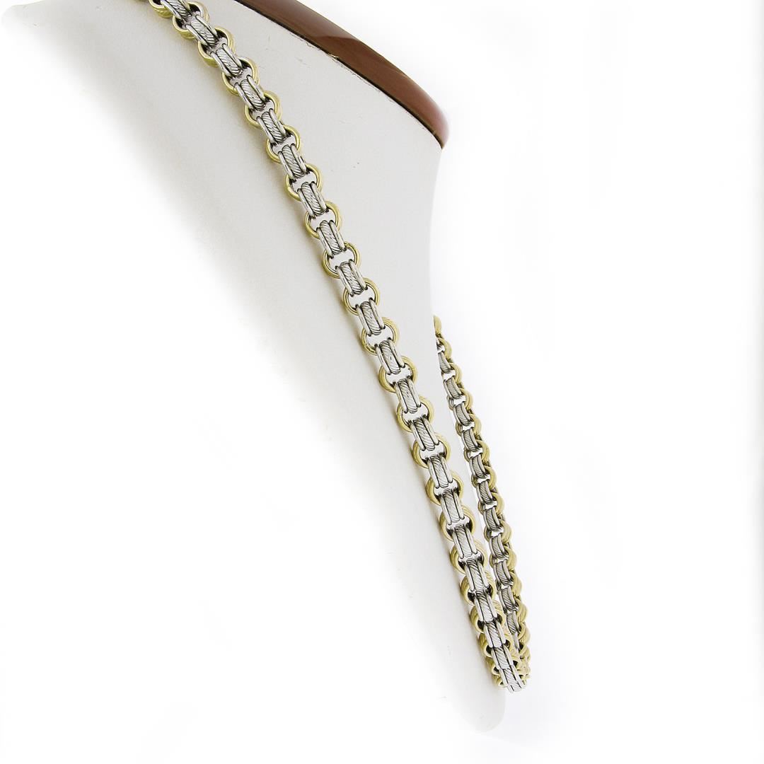 A solid 14k yellow & white gold rolo cable link necklace. It weighs a total of 42.76 grams, measures 6.5mm wide, and measures 23.5 inches in length.