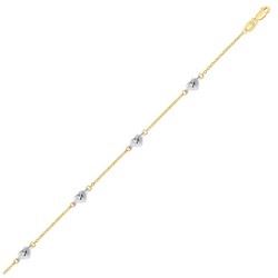 A stunning 14K two tone gold anklet with white gold diamond cut heart stations and a lovely yellow gold chain. A truly elegant piece measuring 10'' and secured with a lobster style lock.Rhodium Polish: NoLine Item Type: GoldMetal Name: Two-Tone GoldMetal Content: 14KStyle Name: Fancy,HeartWidth: 0.13 iClasp: Lobster LockChain Type: Cable