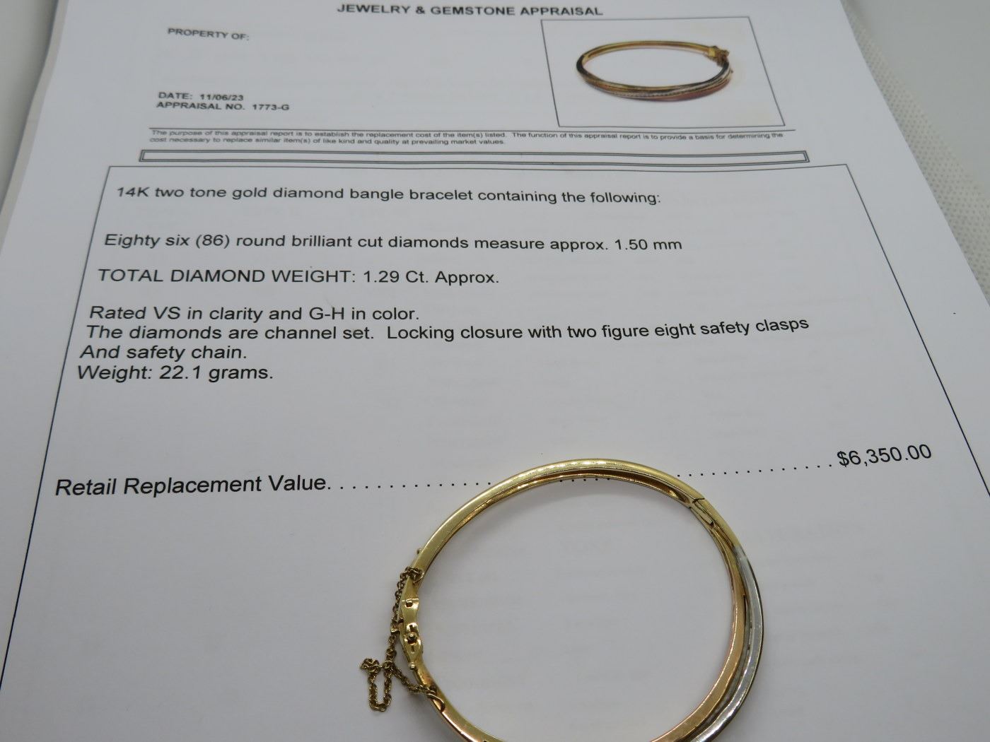 22.1 Grams, - Retail Replacement - $6,350.00