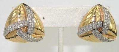 14K Two-Toned ( Yellow/White ) Gold Diamond Earrings. The total earrings weight: 13.2 grams. The total weight of diamond: 1.7 cts. H-I color VS-SI clarity. The size of earrings: 26 x 26 mm and 9 mm in thickness