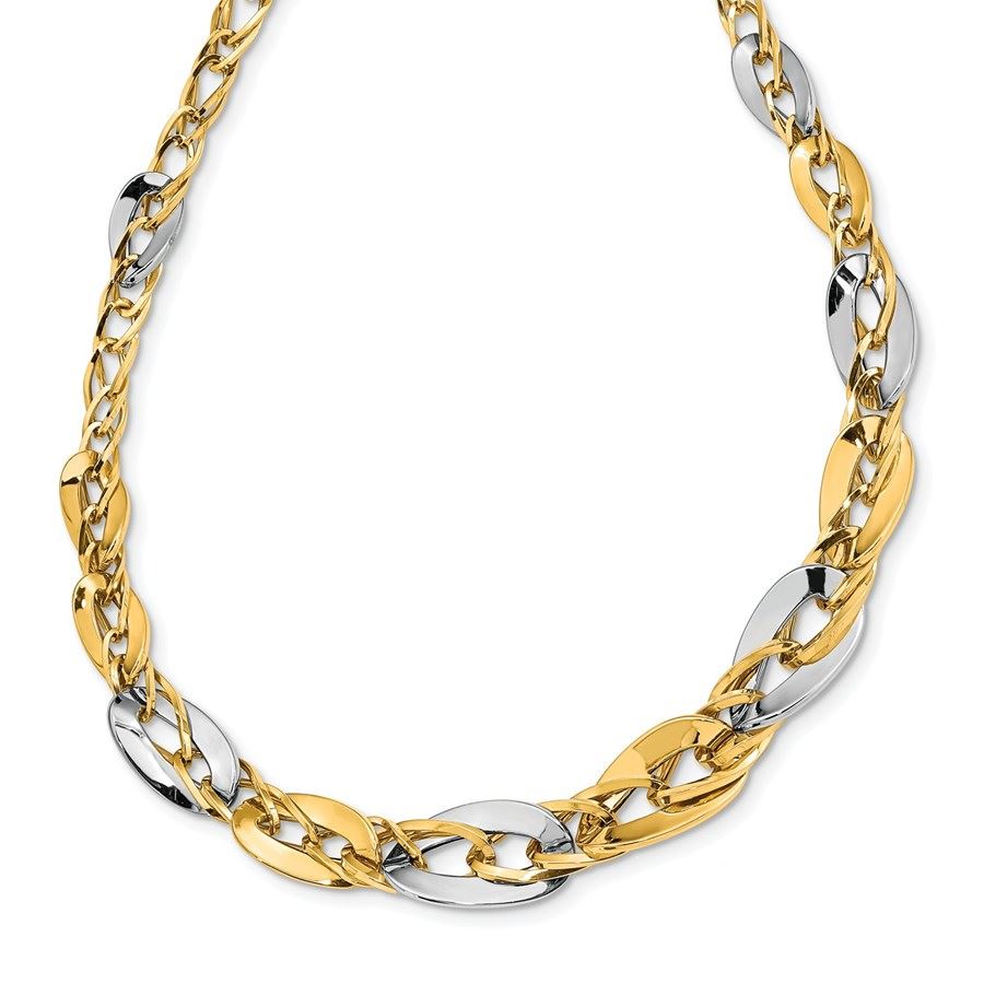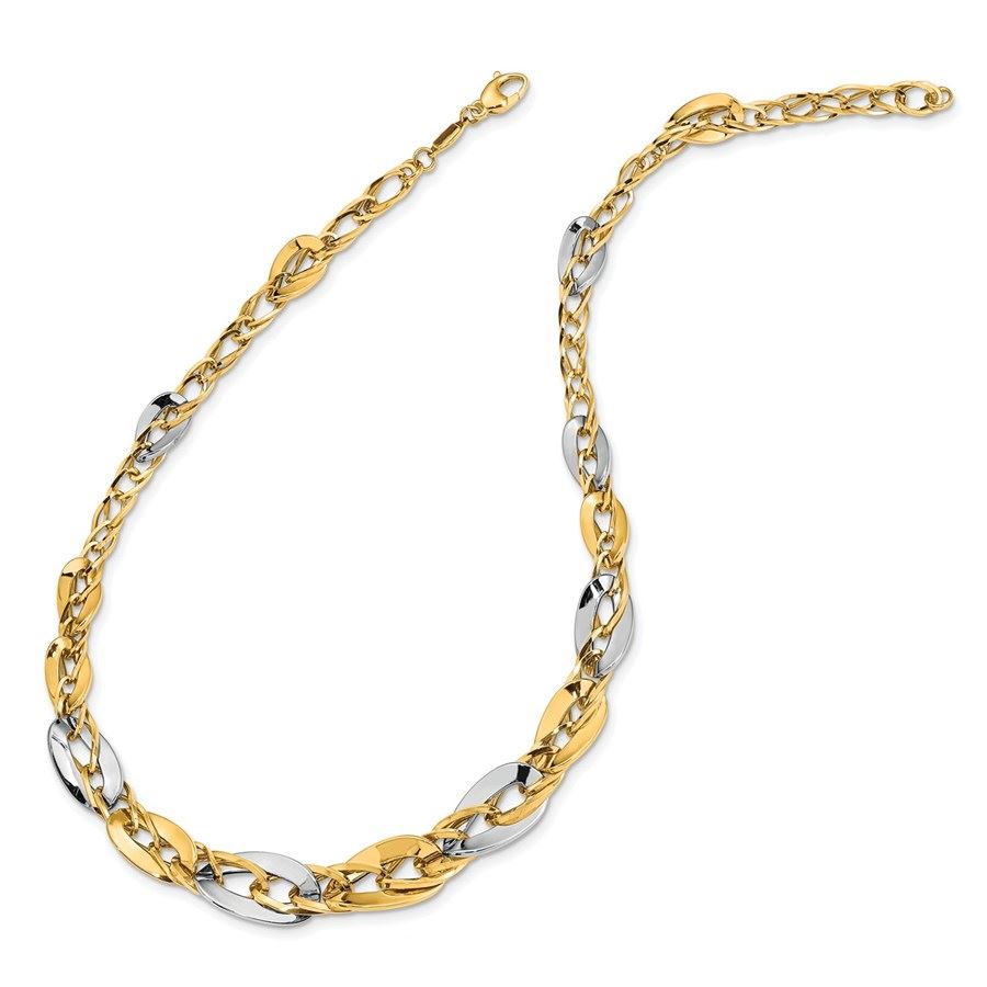14K Two-tone Double Curb Link Graduated Necklace - 17 in.