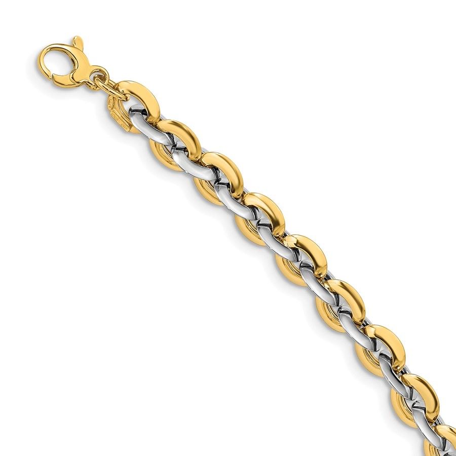 14K Two-tone Polished w/.5 in ext. Fancy Link Bracelet - 7.5 in.