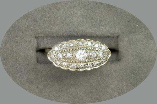 LADY'S 14K WHITE & YELLOW GOLD VINTAGE DIAMOND BAND CONTAINING A CENTER ROUND BRILLIANT CUT & 20 SINGLE CUTS WEIGHING AN ESTIMATED .33 CT TOTAL WEIGHT. 2.9 GMS.