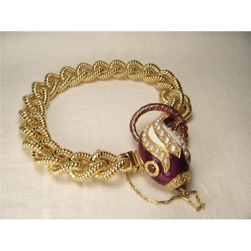 <tr><td>Title:14K Vermeil Pearl Garnet Enamel Snake Bracelet</td></tr>