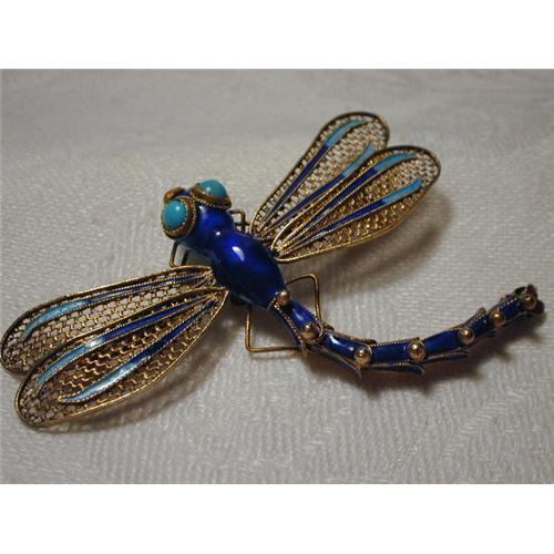 <tr><td>Title:14K Vermeil Turquoise Enamel Dragonfly Brooch</td></tr>