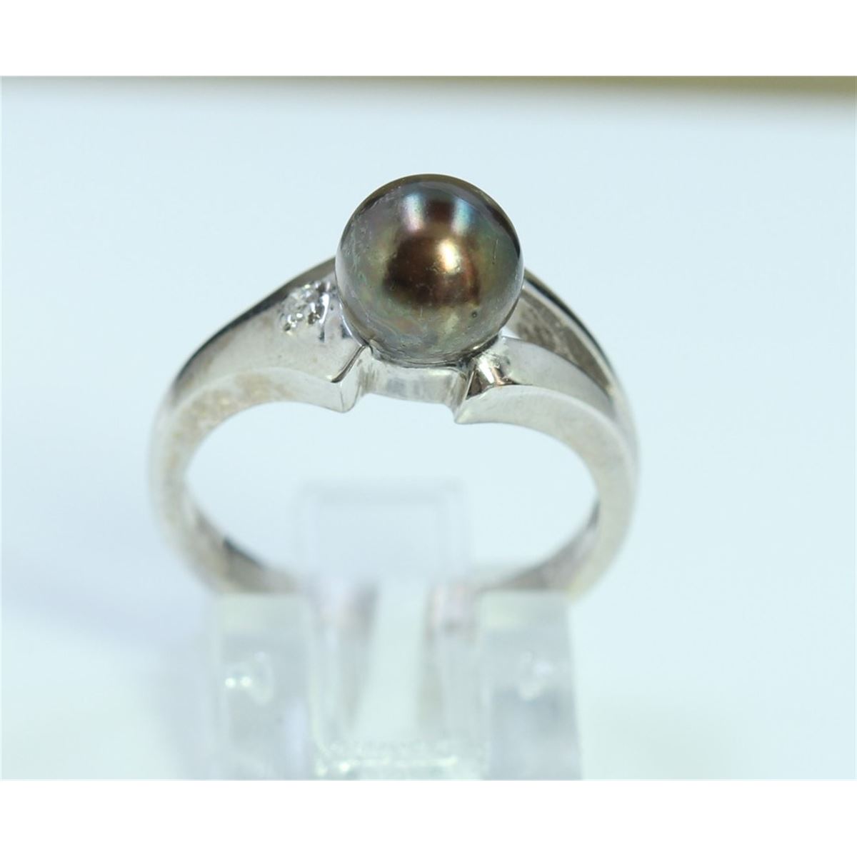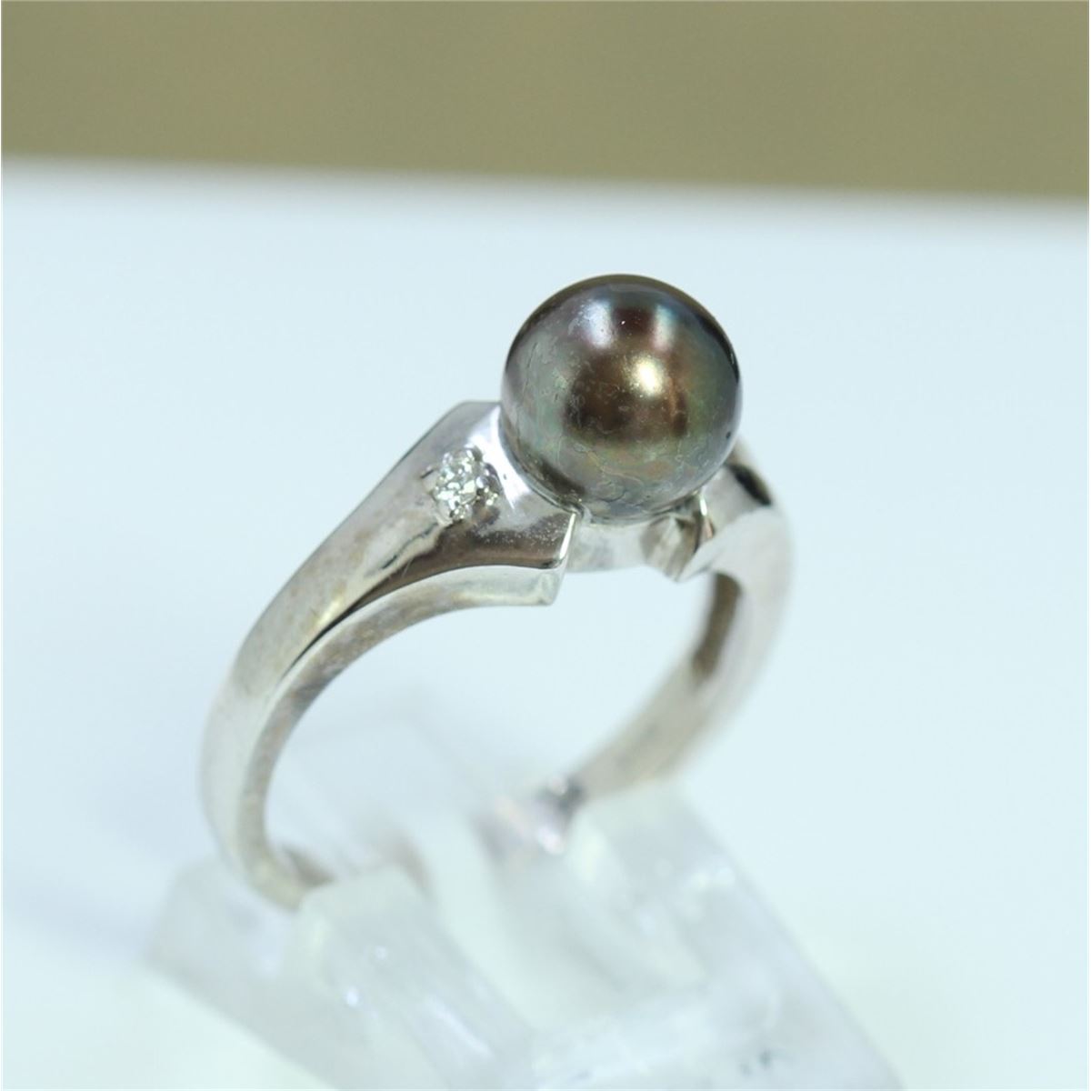 14K W/G PEARL AND DIAMOND RING/3.90 GRAMS/ROUND DIAMOND 0.02CT/SOUTH SEA PEARL 7.80Mm
