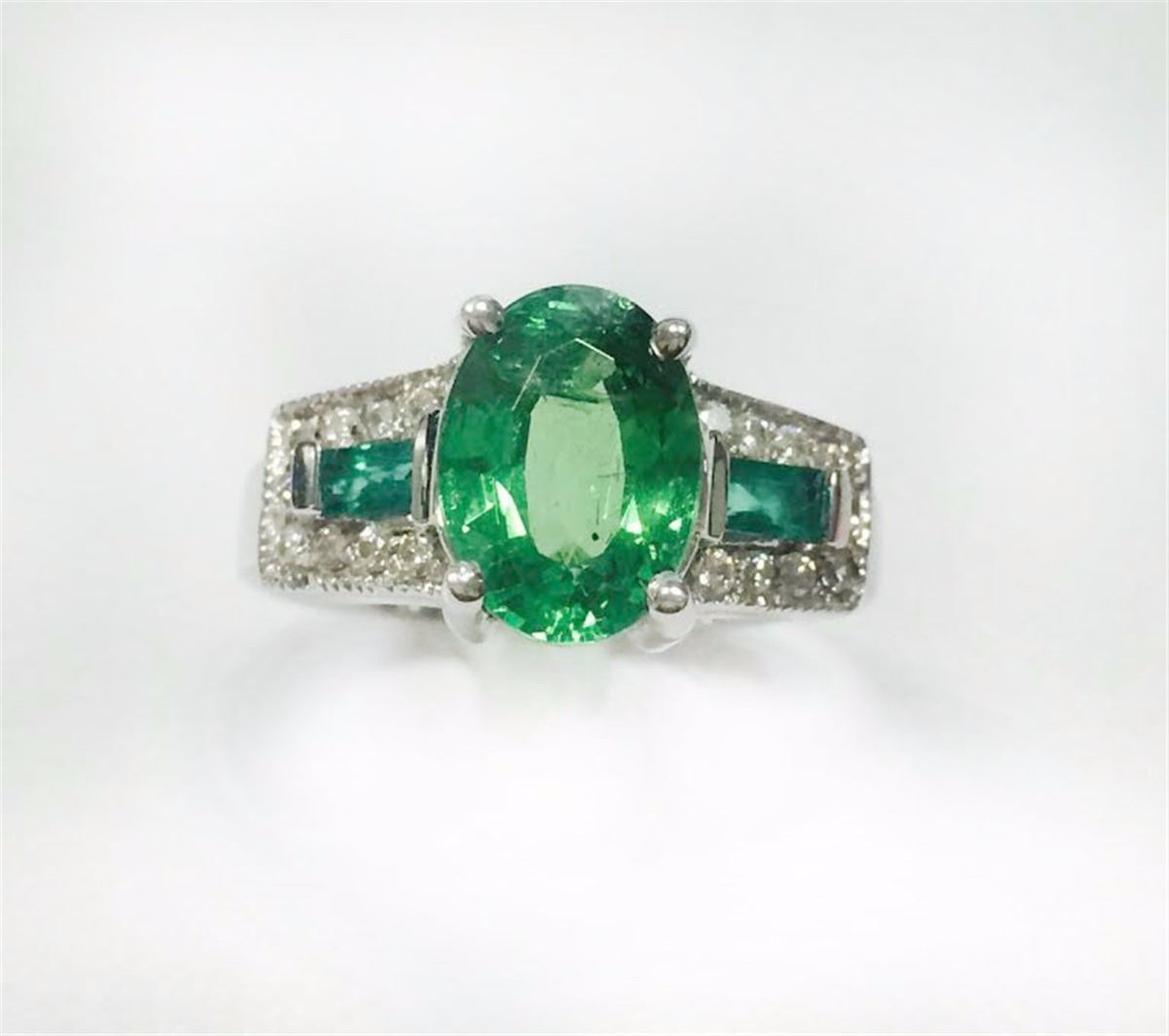 14K W/G RING 4.33GRAM / DIAMOND RD 0.25CT / TSAVORITE 2.97CT