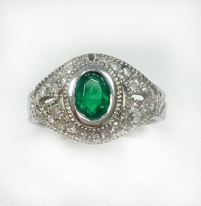 14K W/G RING 4.70GRAM / DIAMOND RD 0.48CT / EMERALD 0.58CT