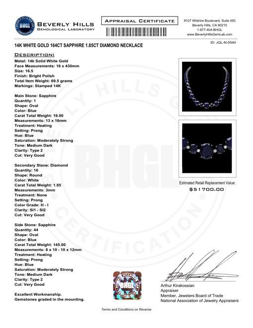 Regarding Appraised Jewelry and Loose Stones - WESTBURY AUCTION GALLERIES sends them out to a third party for Retail Replacement Value Appraisals, which are the most common. These types of evaluations are written for insurance needs. This would be the cost to replace the jewelry with an item of equal quality and kind, considered to be the current market price or the replacement value. This type of appraisal is done to protect you in the event of damage or loss of a valuable item. Our appraisals are conducted by independent 3rd Party appraisal firms that utilizes Certified GIA Gemologist. Appraisals should be used for verification of gemstone and/or metal weight, size, and grade only, not actual value. Appraisal value should be considered for insurance purposes only, not actual value, as price varies greatly from retail locations thru out the world. Items should not be purchased with the expectation to resell for appraisal price, or for profit.