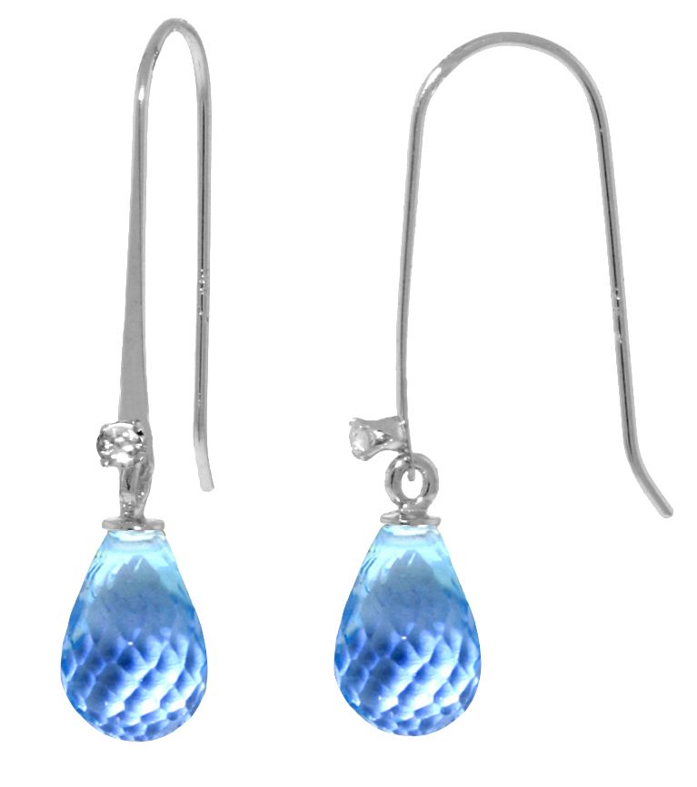 Each 14k Gold Fish Hook Earrings offers two amazing Briolette shaped Natural Blue Topaz with two Genuine Diamonds on top.