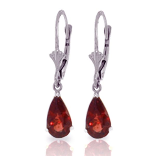 Garnets are known for their fire and stunning beauty, which is why these 14k white gold leverback earrings with garnets allow these gems to get all of the attention. A sleek leverback design made of solid gold adds a traditional look and feel, while the two pear shaped garnets that dangle and move add a luxurious look that coordinate wonderfully with each other. A total of 2.45 carats assures that plenty of sparkle will be reflected through these gorgeous earrings. This jewelry piece is shipped in an elegant black jewelry box and is accompanied by an Appraisal Certificate. Retail price: $1176