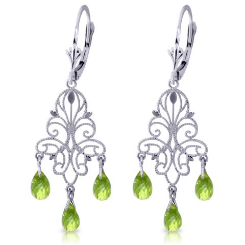 A sophisticated style of Earrings set in 14K Solid Gold matched with six dangling briolette-shaped Peridots