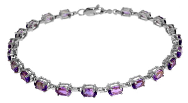 14K. SOLID GOLD TENNIS BRACELET WITH AMETHYST