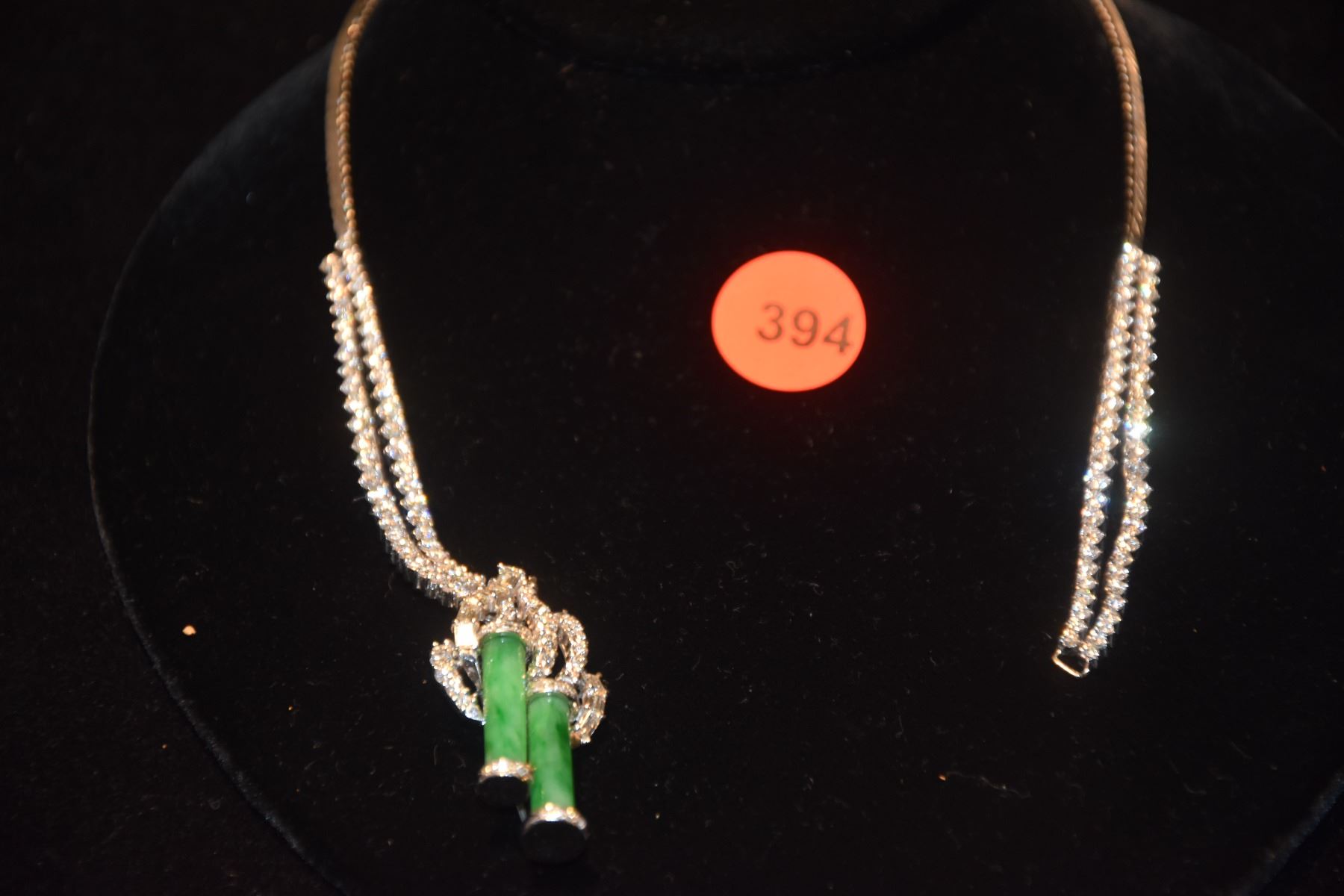 14K WG DIAMOND NECKLACE W/DETACHABLE DIAMOND & JADE PENDANT (APPROX. 8.7 CTW)(33 GTW)