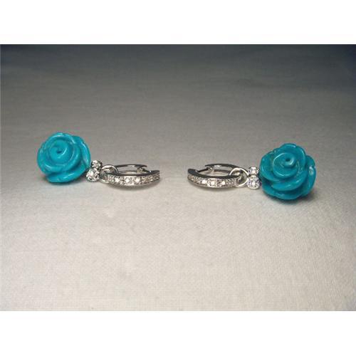 <tr><td><font size="2" face="Arial, Helvetica, sans-serif"><strong><font color="#000033">Title:</font></strong>14K WG Diamond Turquoise Rose Drop Earrings</font></td></tr>
