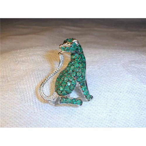 <tr><td>Title:14K WG Emerald Diamond Panther Brooch Pendant</td></tr>