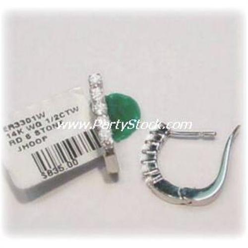 Gorgeous Genuine Diamond Hoop Earrings (1/2 CTW*) set in 14 Karat White Gold are exquisite and create lots of sparkle! Each earring boasts six genuine Diamonds which are round cut for brilliance. <p> We bought a "lot" of Close Out Items from a Premier Retail Chain that went out of business in California recently. We're able to pass our HUGE savings on to YOU! Please note, our quantities are very limited and we will not be able to offer this item again, once it is sold out. CTW = Carats Total Weight Please see our excellent feedback and satisfaction guarantee below. Click on photos to enlarge and view detail. Thanks for your patronage!