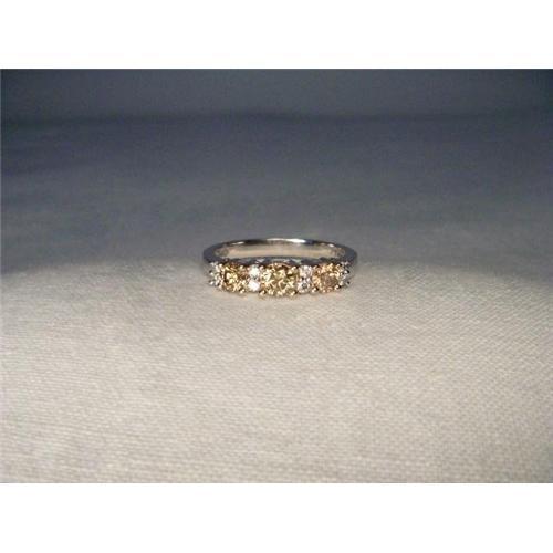 You are looking at an estate14K white gold diamond tri-stone band. This exquisite piece features 3 brilliant round chocolate diamonds measuring 4 mm each and 8 brilliant round diamonds measuring 1 mm each. The total weight of the diamonds is .65 of a carat. The diamonds are H color and SI clarity. The top of the ring measures 3/4 of an inch long by a bit over 1/8 of an inch wide. It is a size 6.75. Sizing is available. It weighs 3 grams. It is in mint condition.