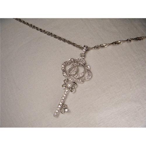 <tr><td><font size="2" face="Arial, Helvetica, sans-serif"><strong><font color="#000033">Title:</font></strong>14K WG Gold Diamond Key Rose Filigree Pendant</font></td></tr>