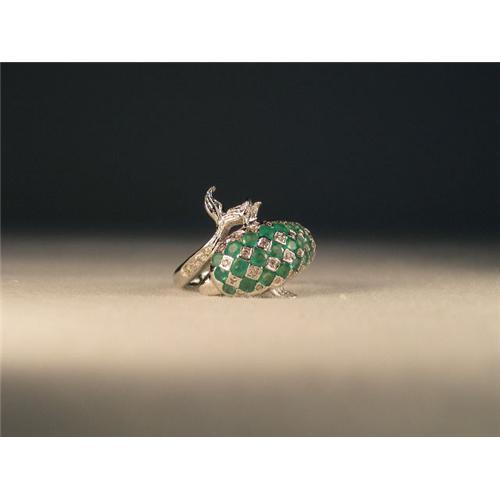 <tr><td>Title:14K WG Gold Emerald Diamond Dolphin Animal Ring</td></tr>