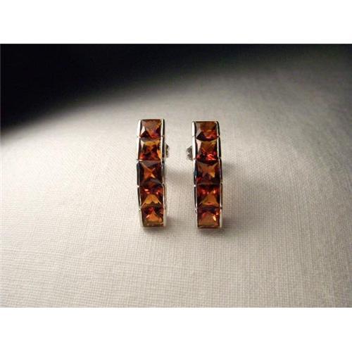 You are looking at a pair of 14K white gold orange citrine hoop earrings. Each earring features 5 natural princess cut citrines each measuring 4 mm across. Each earring measures 3/4 of an inch long by 3/16 of an inch wide. The pair weighs 2.5 grams. They are in mint condition.