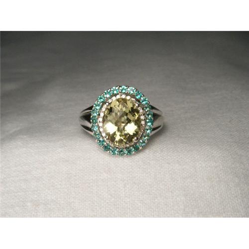 <tr><td><font size="2" face="Arial, Helvetica, sans-serif"><strong><font color="#000033">Title:</font></strong>14K WG Lemon Quartz Emerald Diamond Ring</font></td></tr>