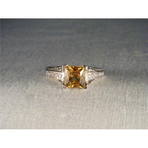 <tr><td>Title:14K WG Princess Citrine Diamond Filigree Ring</td></tr>