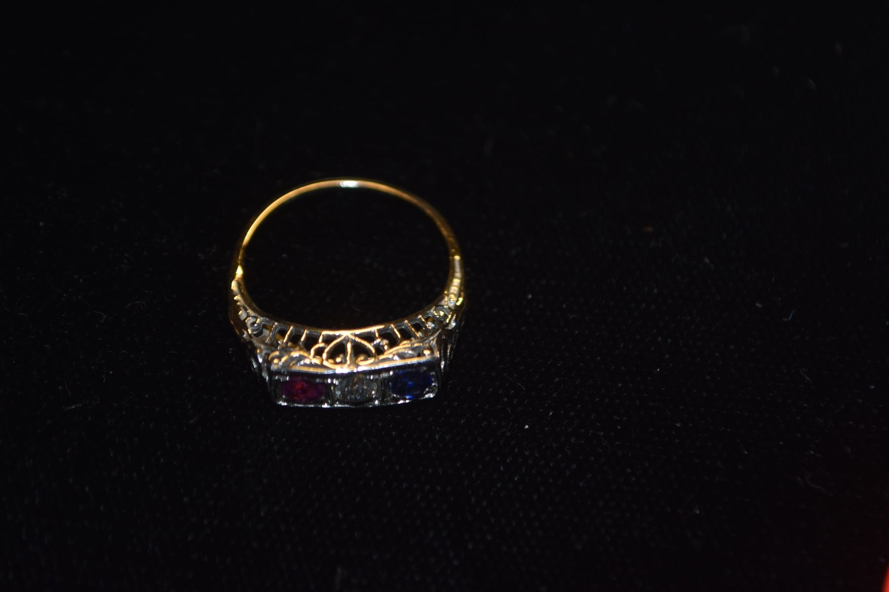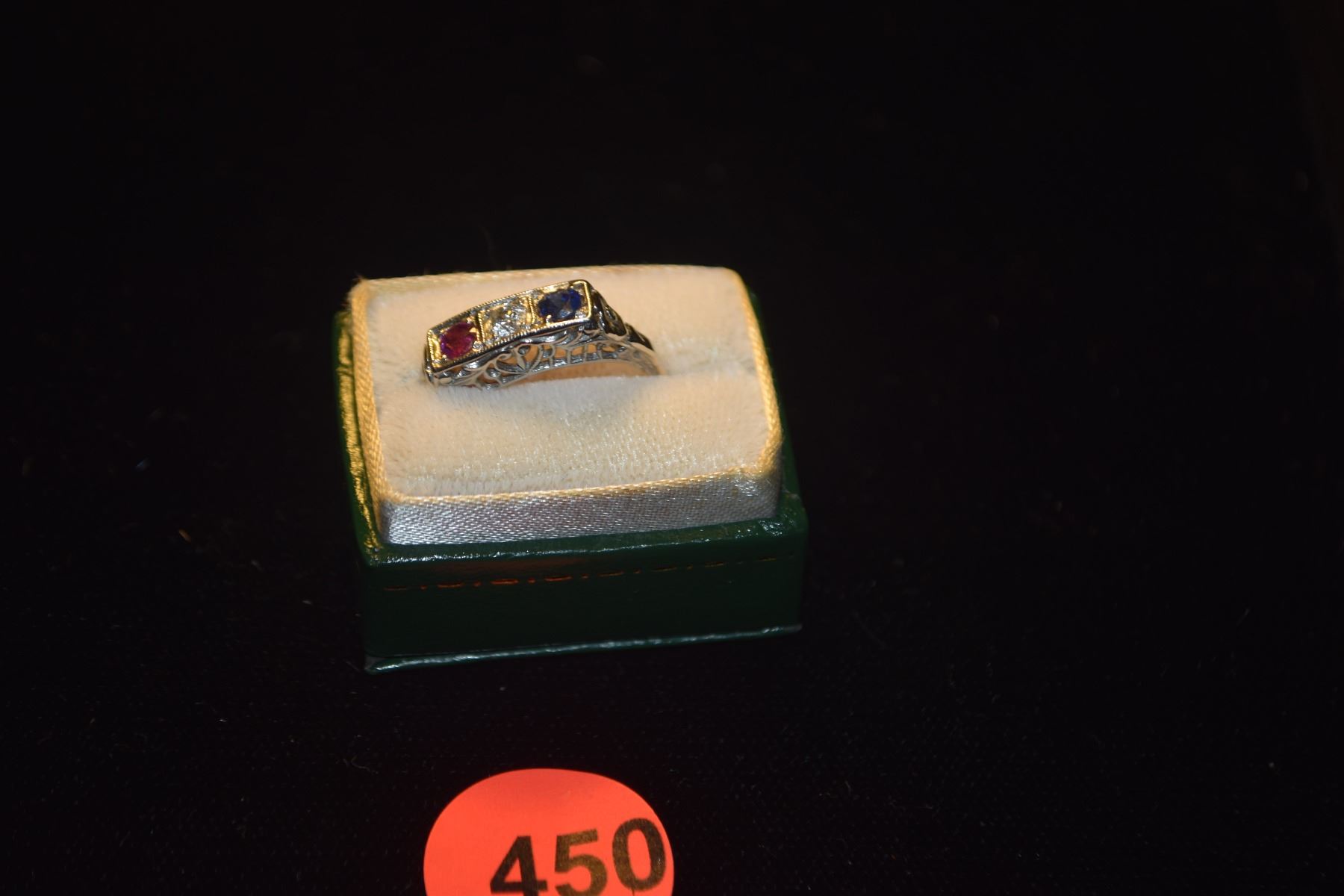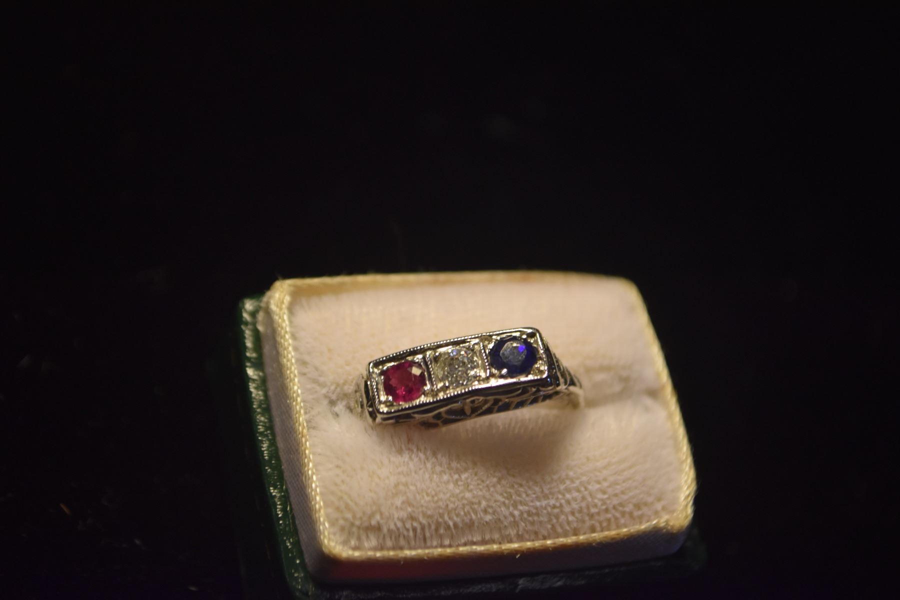 14K WG RUBY, SAPPHIRE & DIAMOND RING, SIZE 6 1/2 (2.2 GTW)