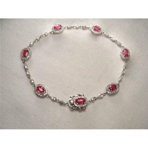 You are looking at an estate 14K white gold ruby and diamond tennis bracelet. This gorgeous piece features 7 natural oval rubies measuring 5 mm by 3 mm and 154 brilliant round diamonds with a total weight of .70 of a carat. The bracelet measures 7.5 inches long by 1/4 of an inch wide. It weighs 7.3 grams. It is in mint condition.