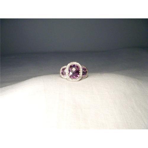 <tr><td><font size="2" face="Arial, Helvetica, sans-serif"><strong><font color="#000033">Title:</font></strong>14K WG Tri-Stone Filigree Amethyst Diamond Ring</font></td></tr>