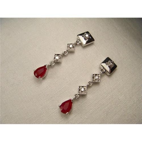 <tr><td>Title:14K WG White Gold Ruby Diamond Drop Earrings</td></tr>
